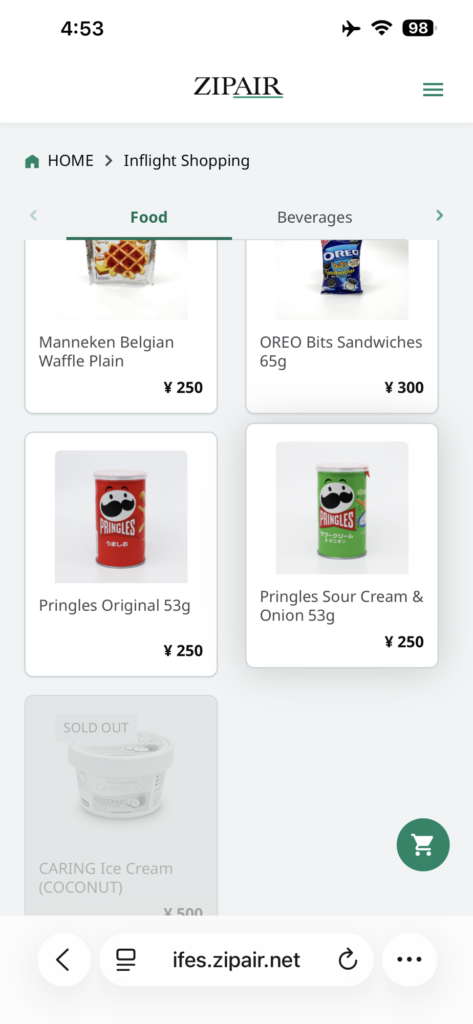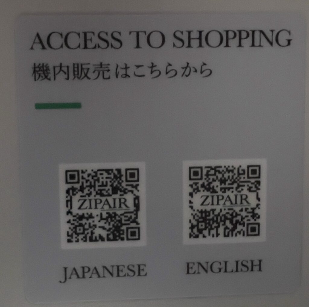 Zipair has neat QR code that opens browser on phone and allows you to order food and beverages. The flight attendant then brings you your items.
